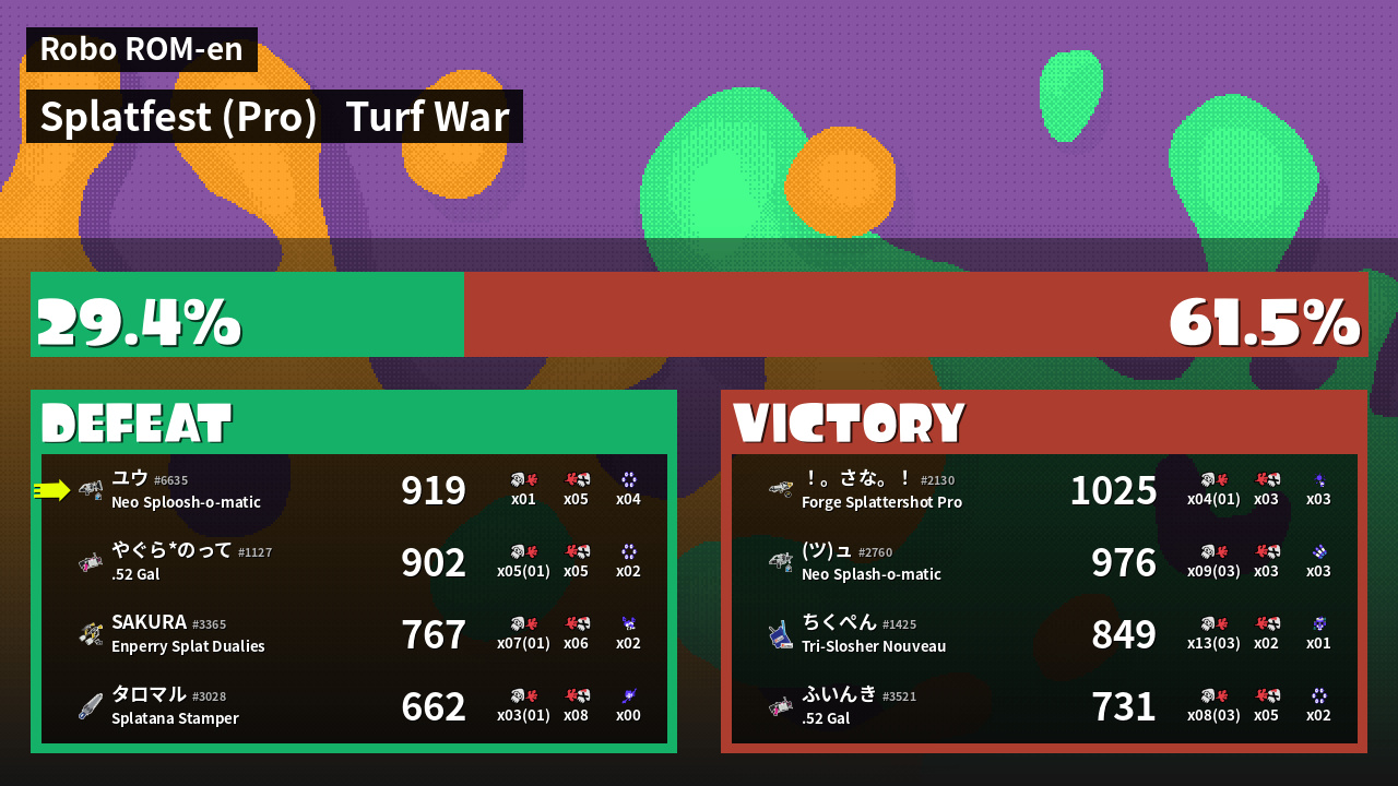| Mode | Turf War - Splatfest (Pro) | ||