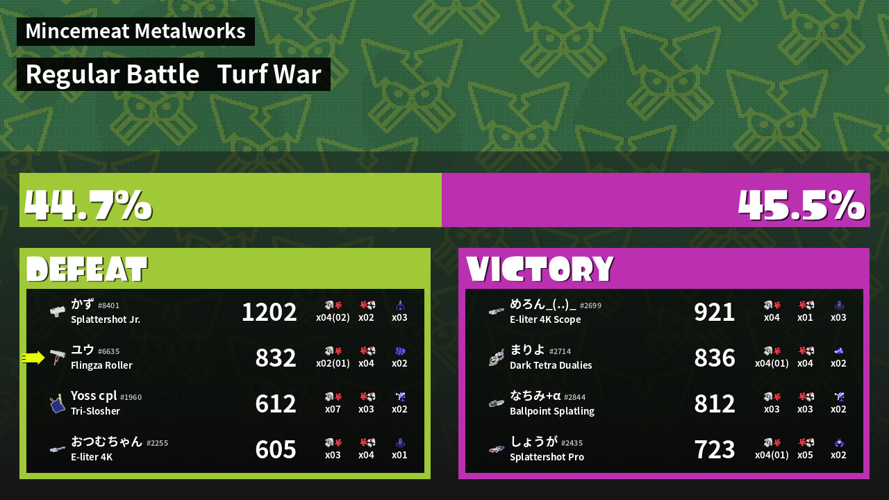 | Medals | #1 Enemy-Base Inker #1 Tenta Missiles User #2 Turf Inker | ||