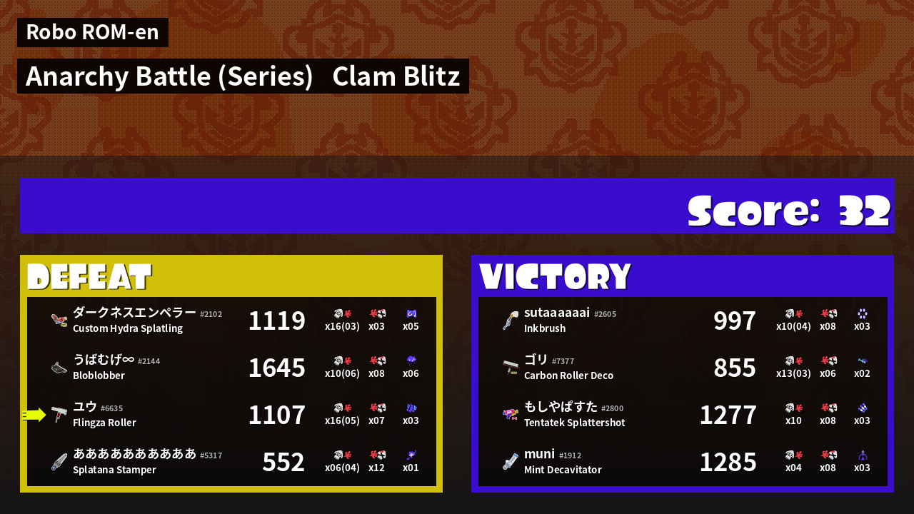 | Mode | Clam Blitz - Anarchy Battle (Series) | ||