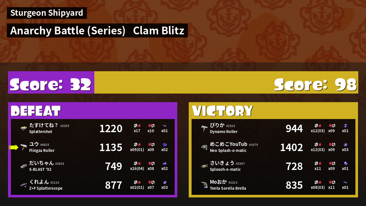 | Mode | Clam Blitz - Anarchy Battle (Series) | ||