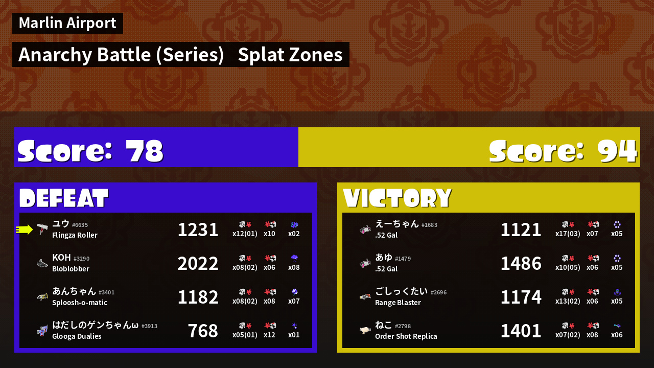 | Mode | Splat Zones - Anarchy Battle (Series) | ||
