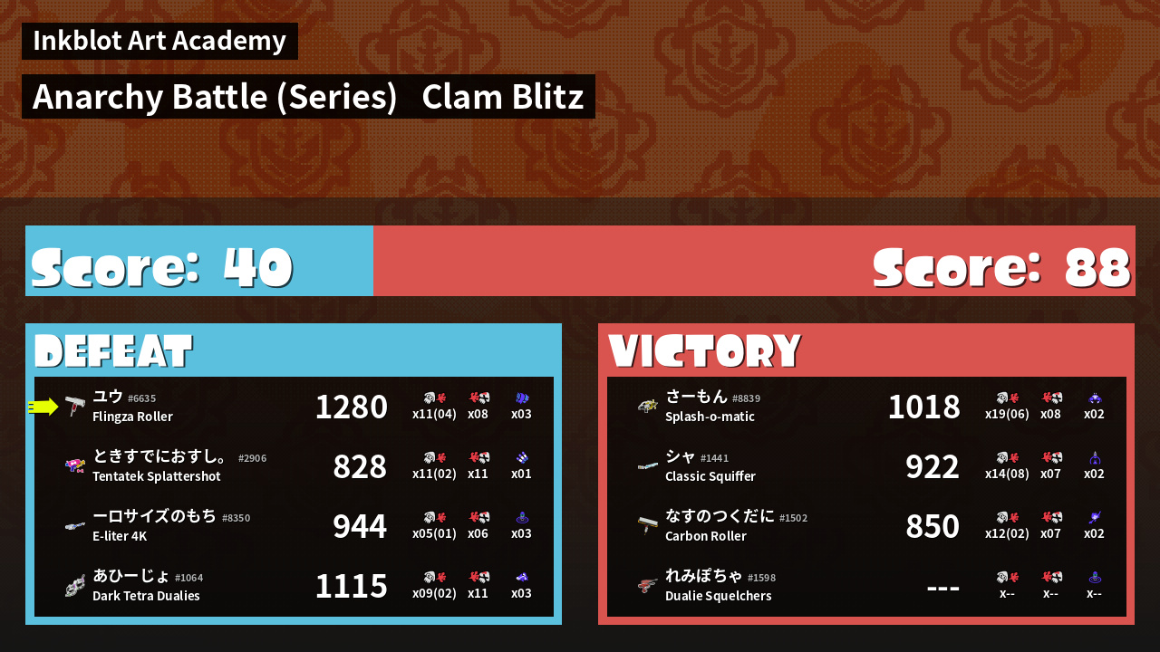 | Mode | Clam Blitz - Anarchy Battle (Series) | ||