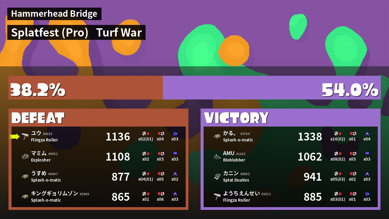 | Mode | Turf War - Splatfest (Pro) | ||