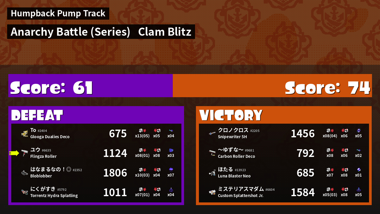 | Mode | Clam Blitz - Anarchy Battle (Series) | ||