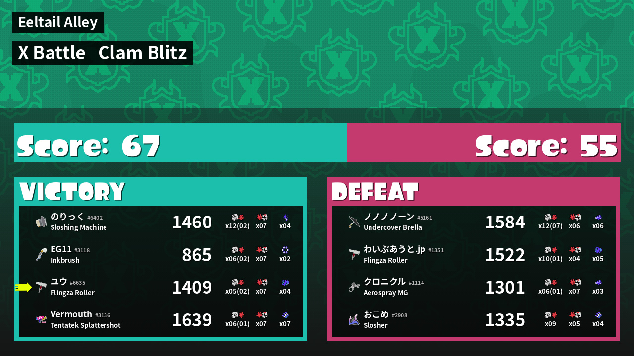 | Medals | #1 Clam Carrier #1 Popular Target #1 Splat Assister | ||