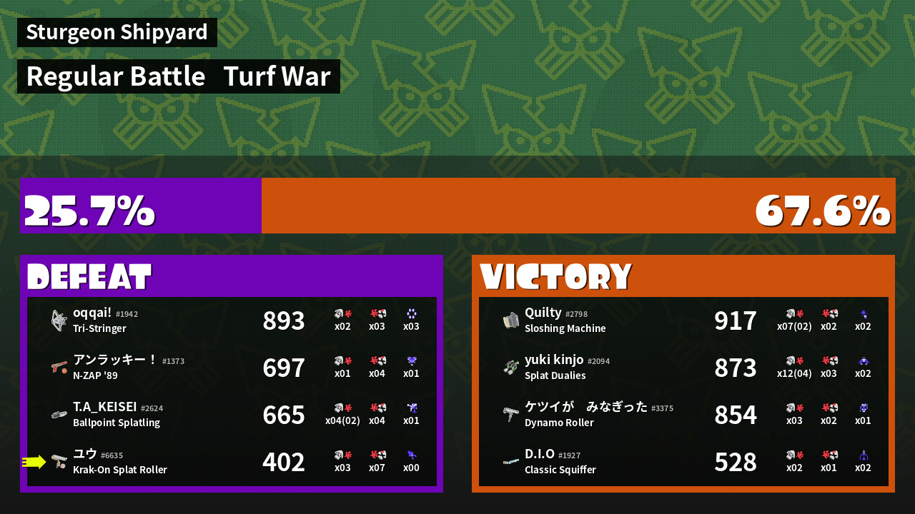 | Medals | #1 Enemy-Base Inker #1 Enemy Splatter #1 Base Defender | ||