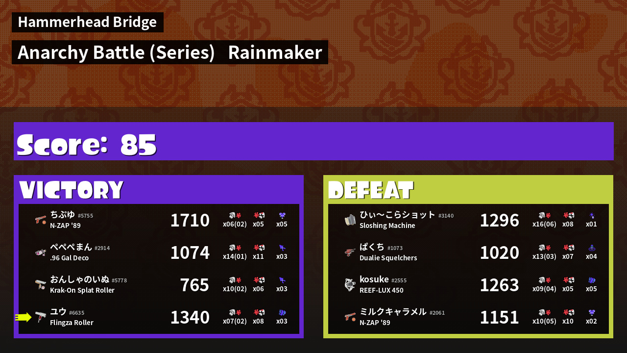 | Medals | #1 Splat Assister #1 Rainmaker Stopper #1 Tenta Missiles User | ||