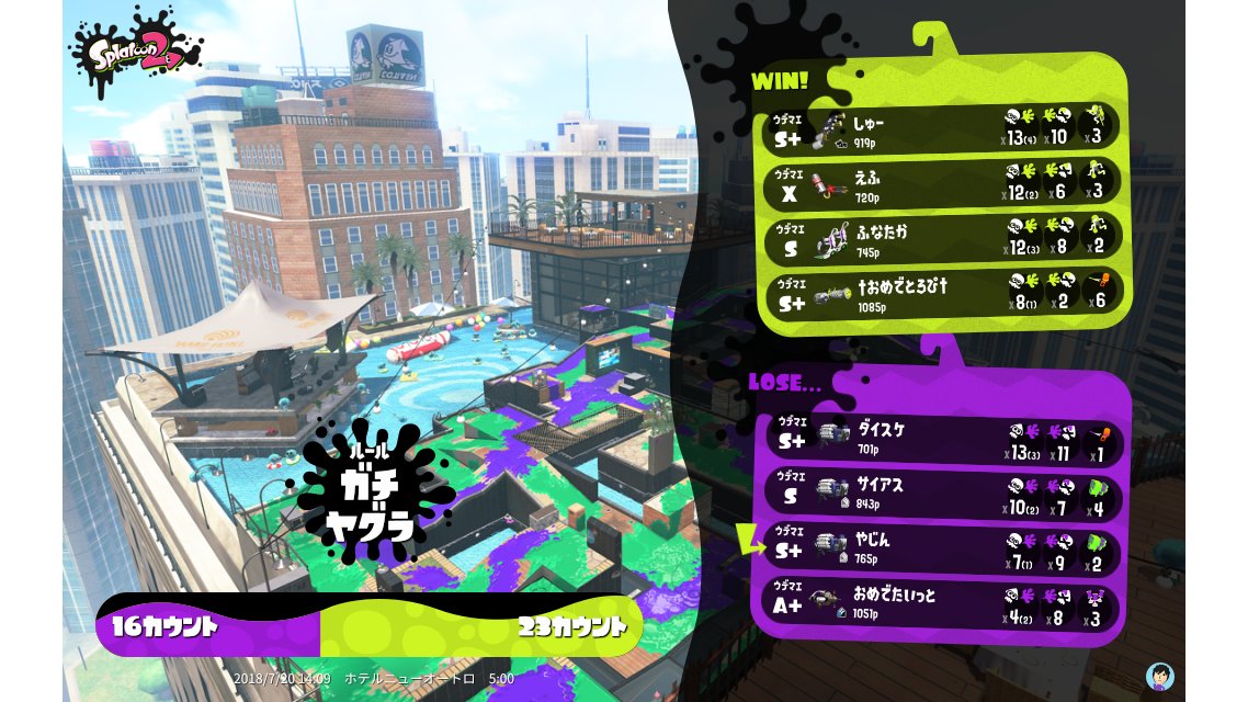 | Name | Weapon | Level | Rank | Inked | k+a/sp | k/d |