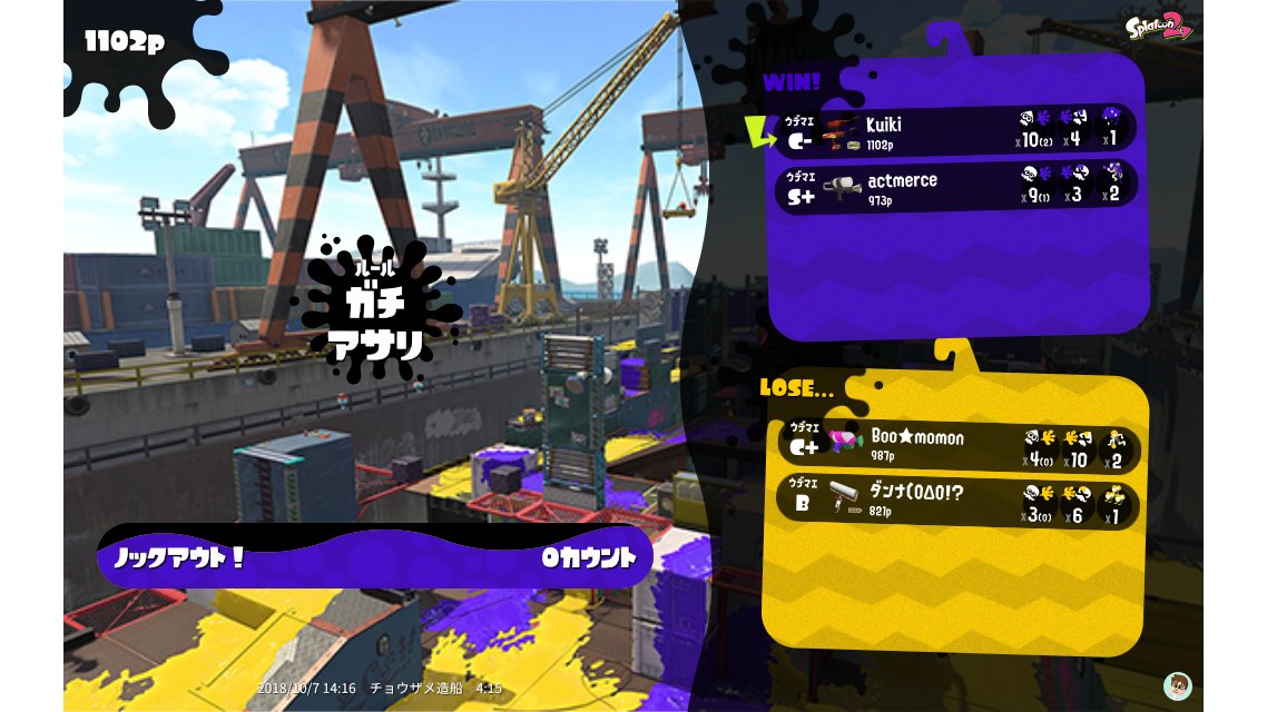 | Name | Weapon | Level | Rank | Inked | k+a/sp | k/d |
