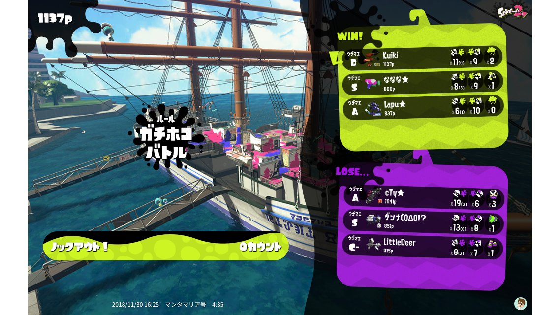 | Name | Weapon | Level | Rank | Inked | k+a/sp | k/d |