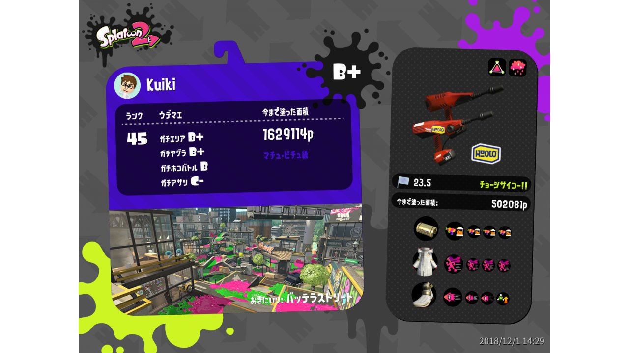 | Name | Weapon | Level | Rank | Inked | k+a/sp | k/d |