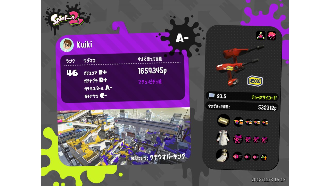 | Name | Weapon | Level | Rank | Inked | k+a/sp | k/d |