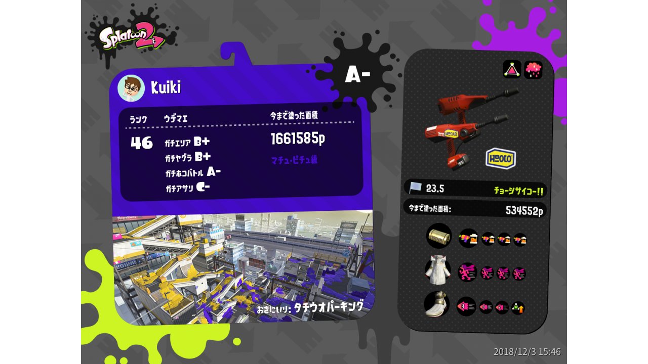 | Name | Weapon | Level | Rank | Inked | k+a/sp | k/d |
