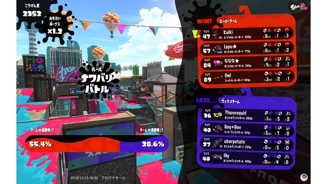 | Splatfest Title | ヒーロー Fanboy 40 → ヒーロー Fiend 36 | ||||||||||||||||||||||||||||