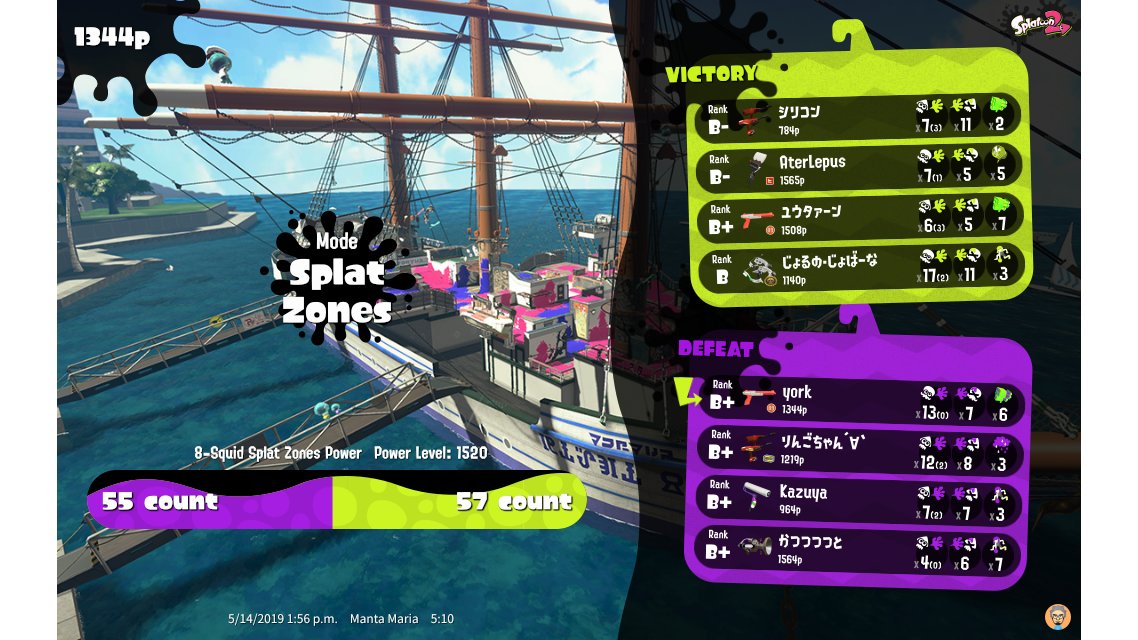 | Mode | Splat Zones - Ranked Battle | ||||||||||||||||||||||||||||