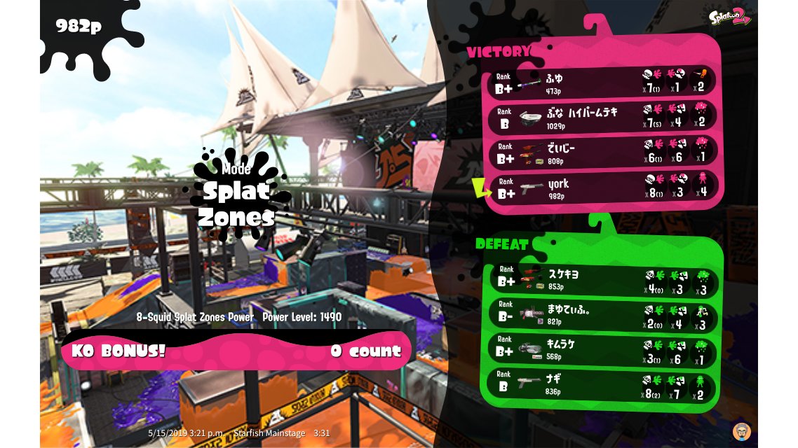 | Mode | Splat Zones - Ranked Battle | ||||||||||||||||||||||||||||