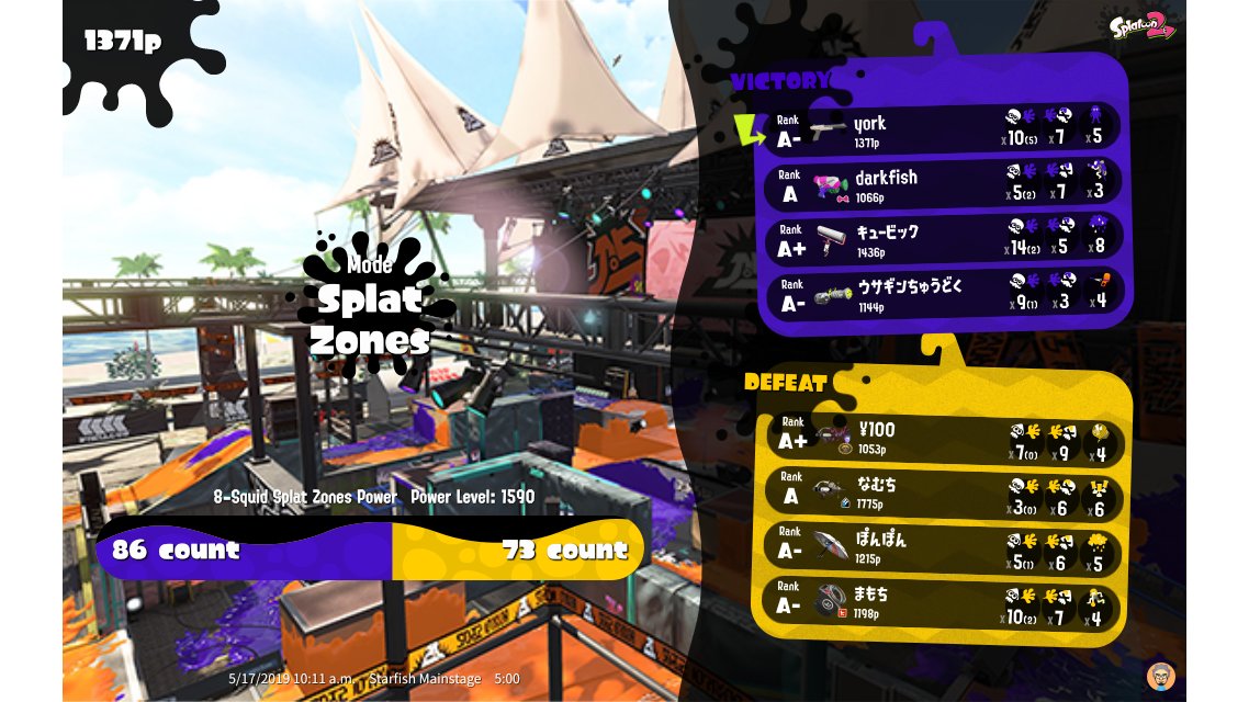 | Mode | Splat Zones - Ranked Battle | |||||||||||||||||||||||||||||||