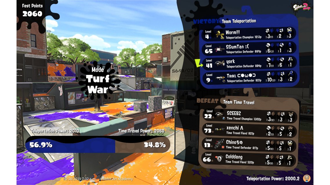 | Splatfest Title | Teleportation Defender 140 → Teleportation Defender 230 | |||||||||||||||||||||||||||||||