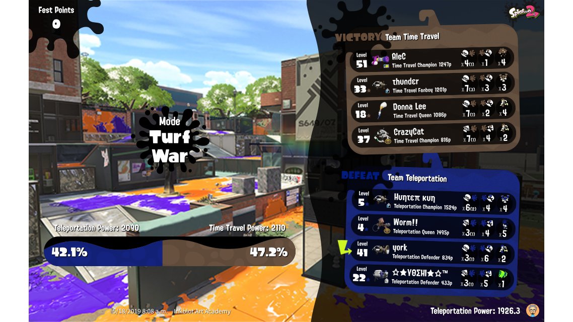 | Splatfest Title | Teleportation Defender 460 → Teleportation Defender 480 | |||||||||||||||||||||||||||||||
