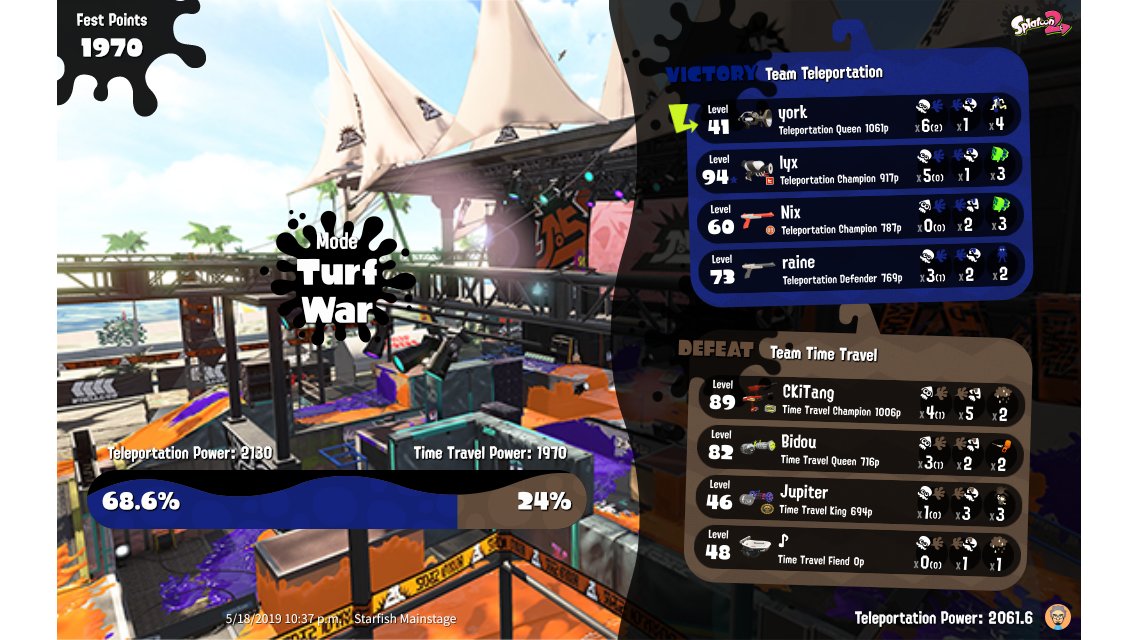 | Splatfest Title | Teleportation Queen → Teleportation Queen | |||||||||||||||||||||||||||||||||||||