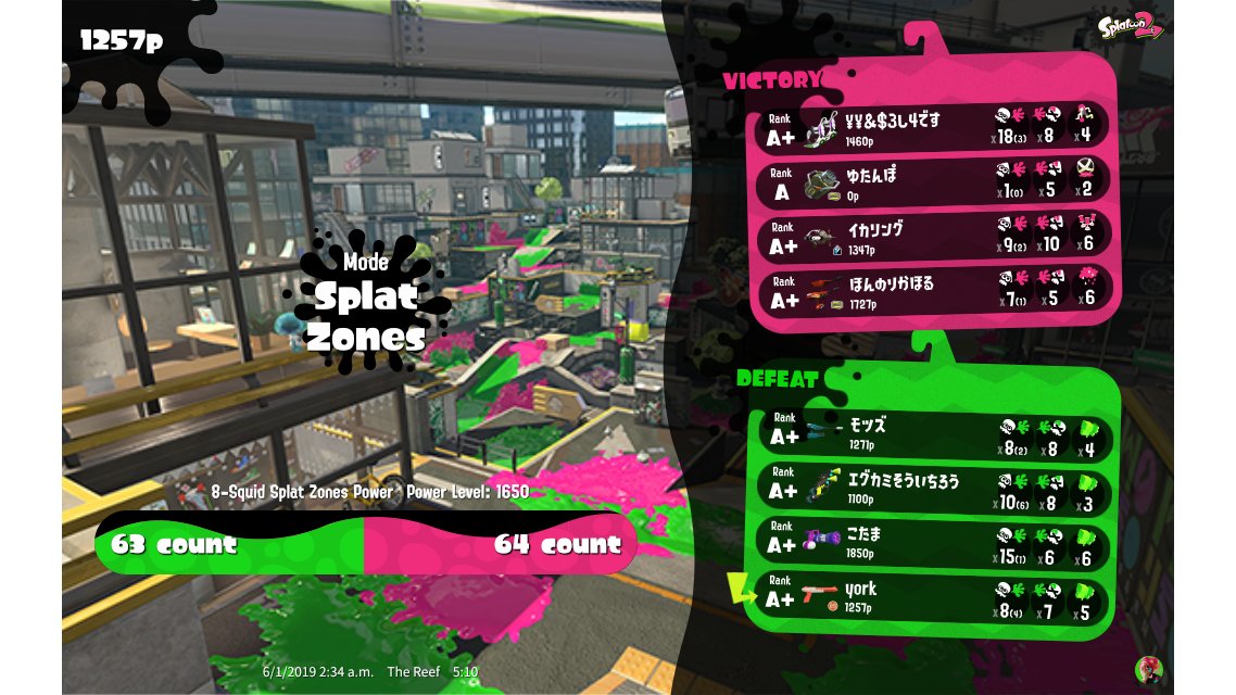 | Mode | Splat Zones - Ranked Battle | ||||||||||||||||||||||||||||