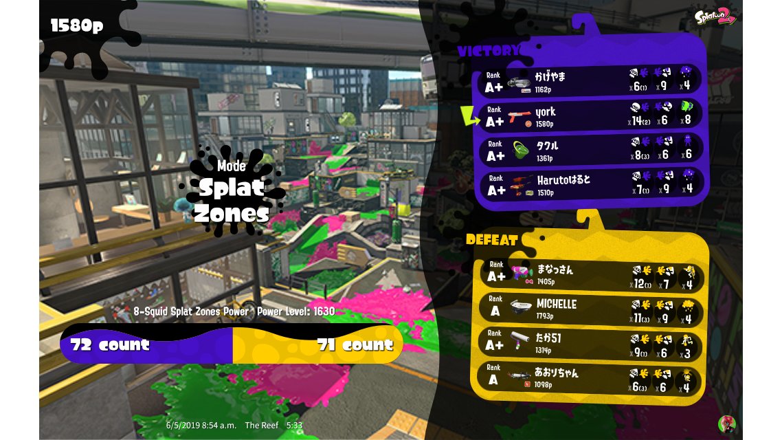 | Mode | Splat Zones - Ranked Battle | |||||||||||||||||||||||||||||||