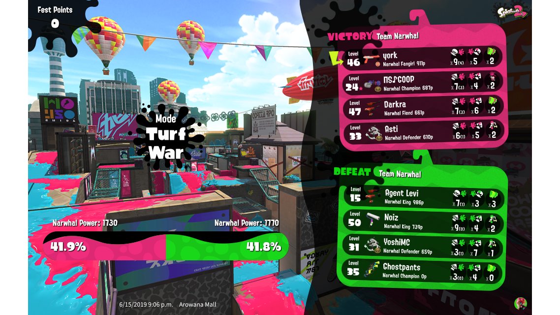 | Splatfest Title | Narwhal Fangirl 0 → Narwhal Fangirl 70 | |||||||||||||||||||||||||