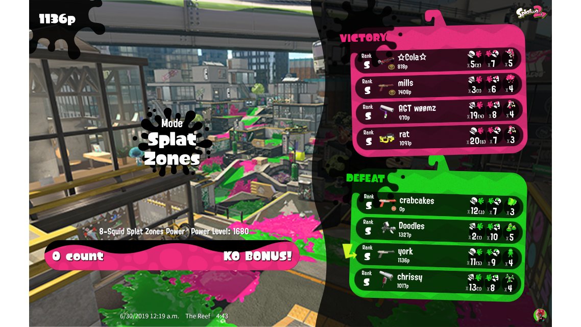 | Mode | Splat Zones - Ranked Battle | |||||||||||||||||||||||||||||||