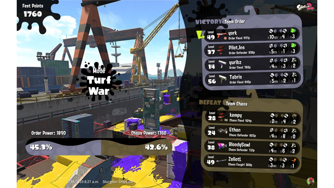 | Mode | Turf War - Splatfest (Pro) | ||||||||||||||||||||||||||||