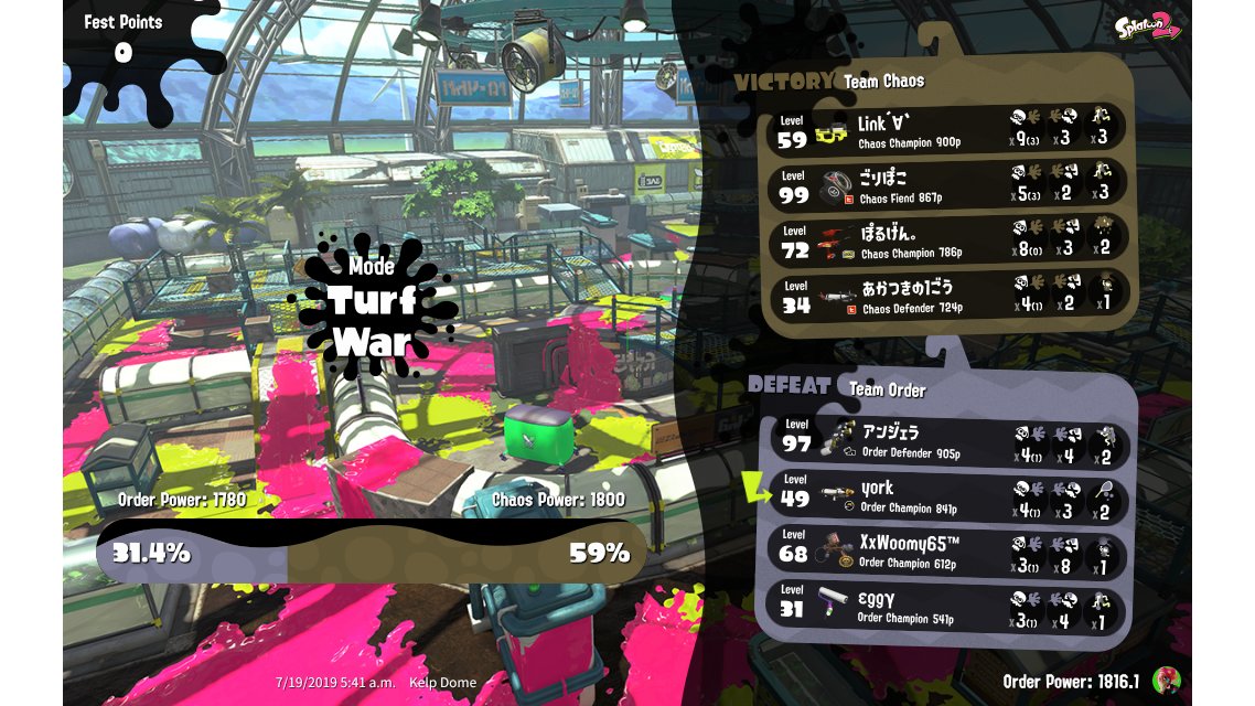 | Splatfest Title | Order Champion 430 → Order Champion 450 | |||||||||||||||||||||||||||||||