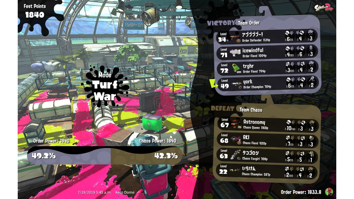 | Their team's splatfest power | 1,840 | |||||||||||||||||||||||||||||||