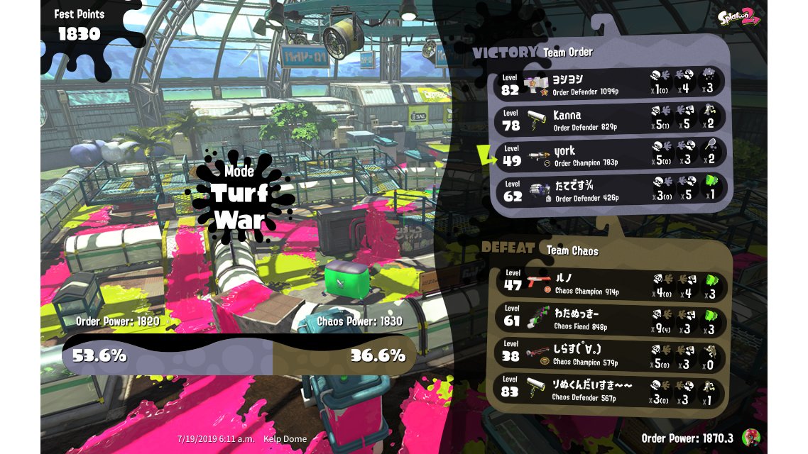 | Splatfest Title | Order Champion 790 → Order Champion 870 | |||||||||||||||||||||||||||||||