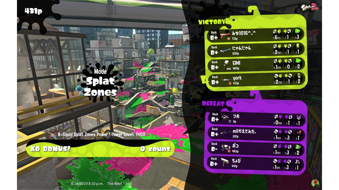 | Mode | Splat Zones - Ranked Battle | |||||||||||||||||||||||||||||||