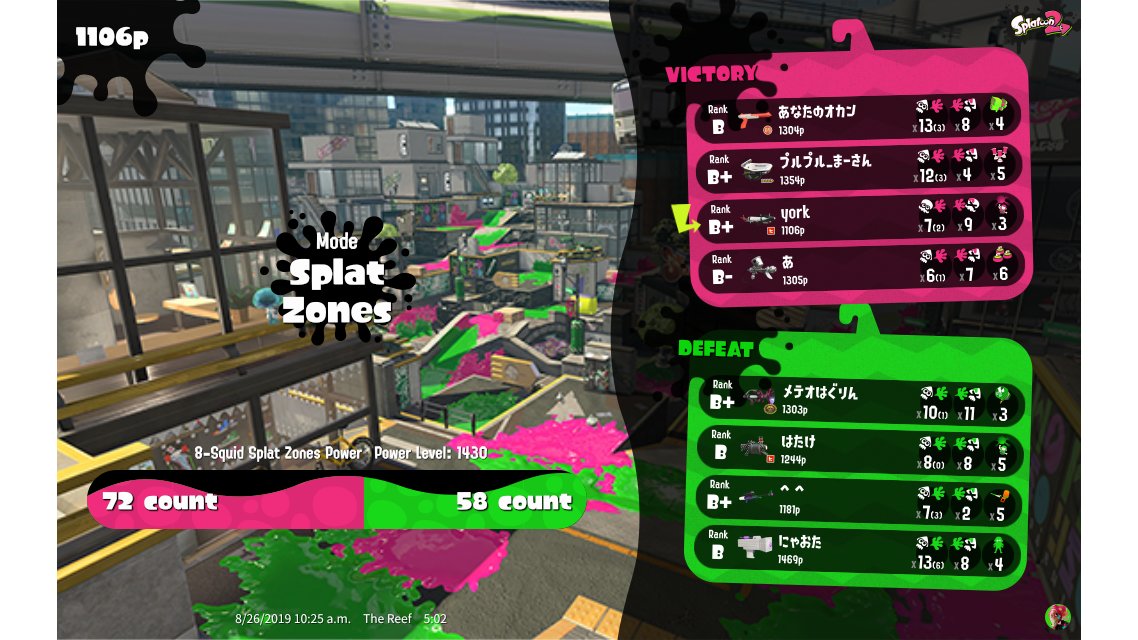 | Mode | Splat Zones - Ranked Battle | |||||||||||||||||||||||||||||||