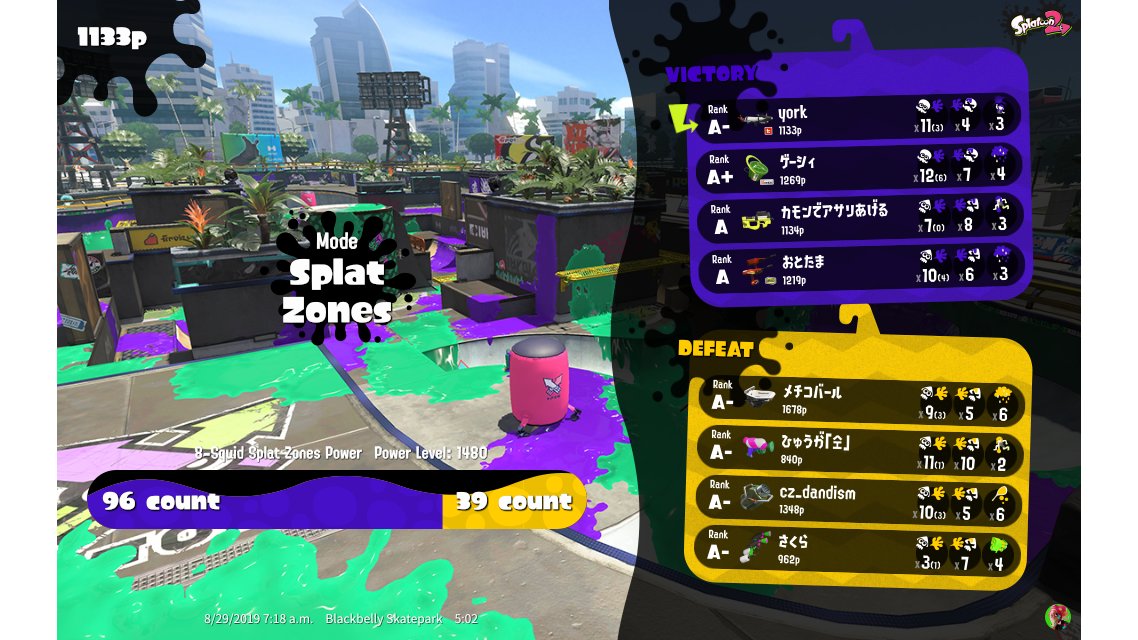 | Mode | Splat Zones - Ranked Battle | |||||||||||||||||||||||||||||||