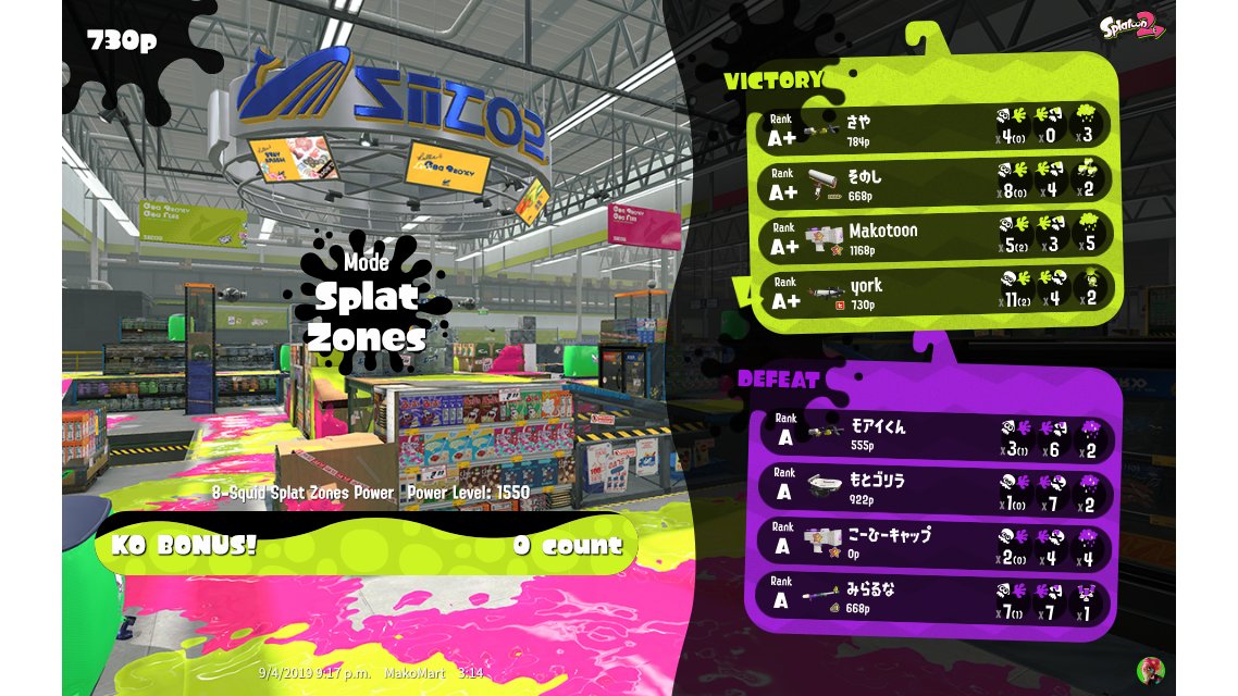 | Mode | Splat Zones - Ranked Battle | |||||||||||||||||||||||||||||||