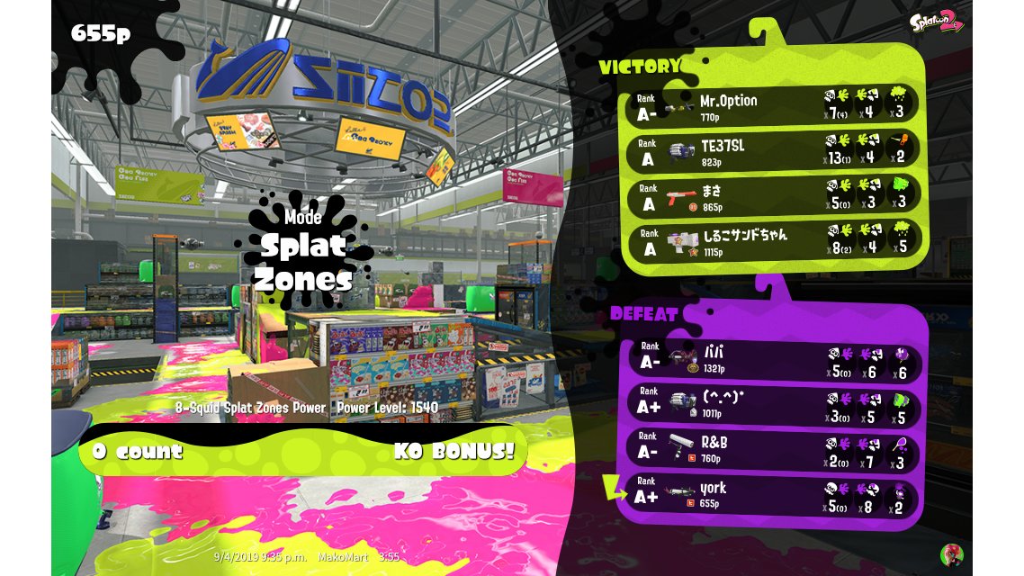 | Mode | Splat Zones - Ranked Battle | |||||||||||||||||||||||||||||||