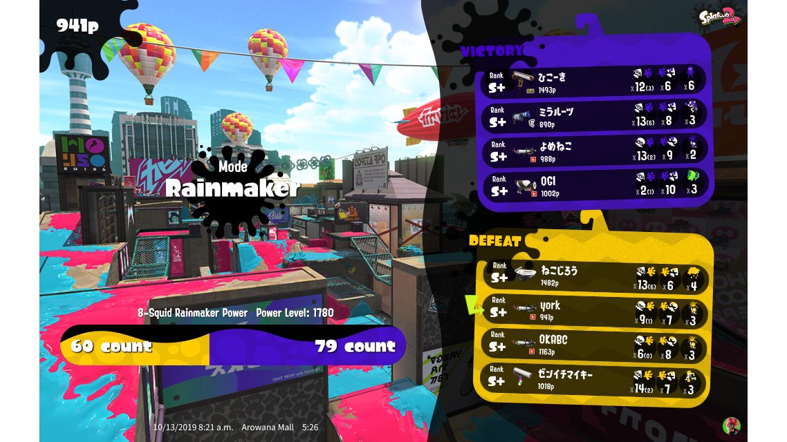 | SplatNet Battle # | 2,921 | |||||||||||||||||||||||||||||||