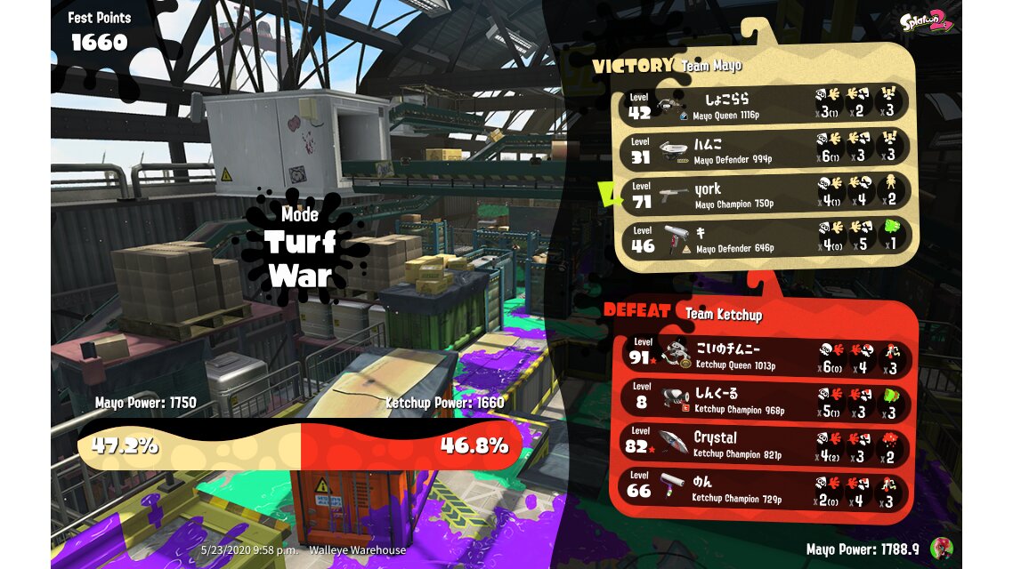 | Their team's splatfest power | 1,660 | |||||||||||||||||||||||||||||||||||||