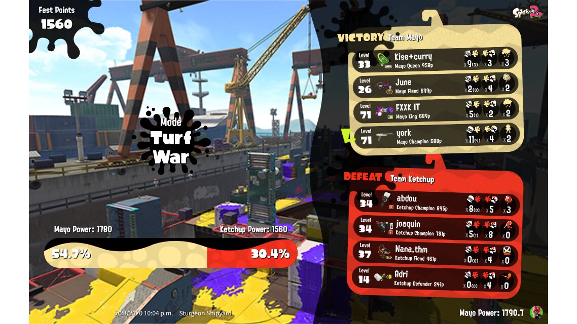 | My team's splatfest power | 1,780 | |||||||||||||||||||||||||||||||||||||