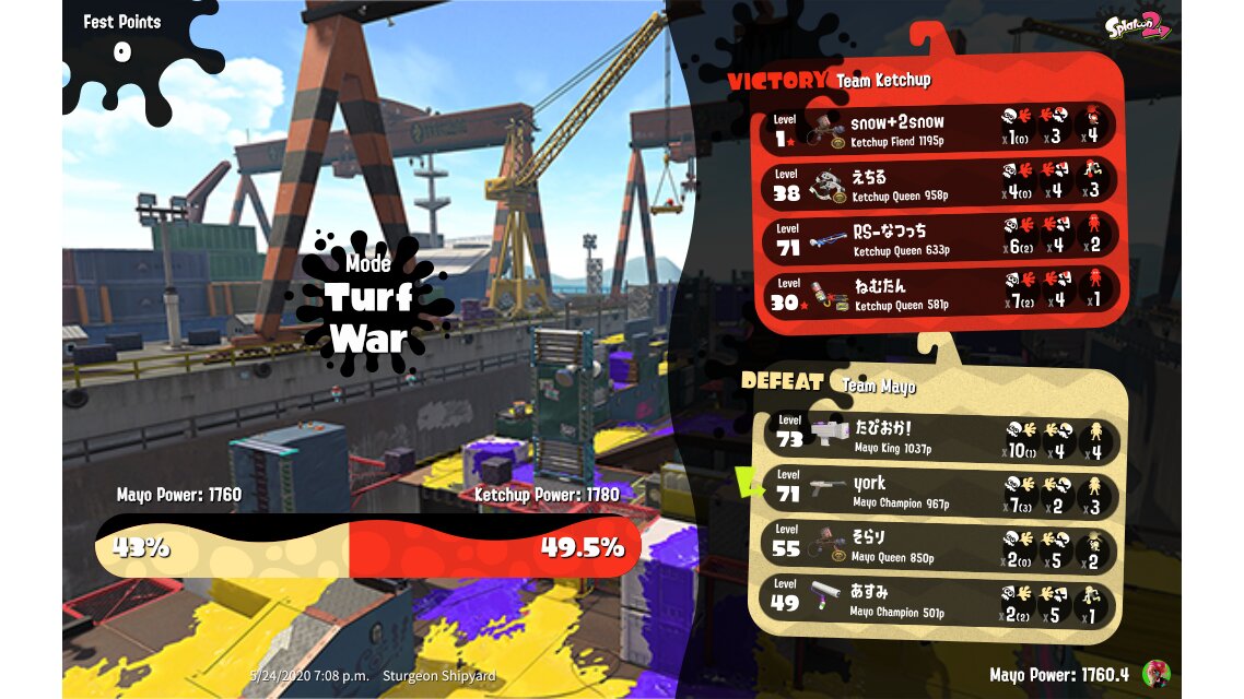 | Splatfest Title | Mayo Champion 928 → Mayo Champion 948 | ||||||||||||||||||||||||||||||||||