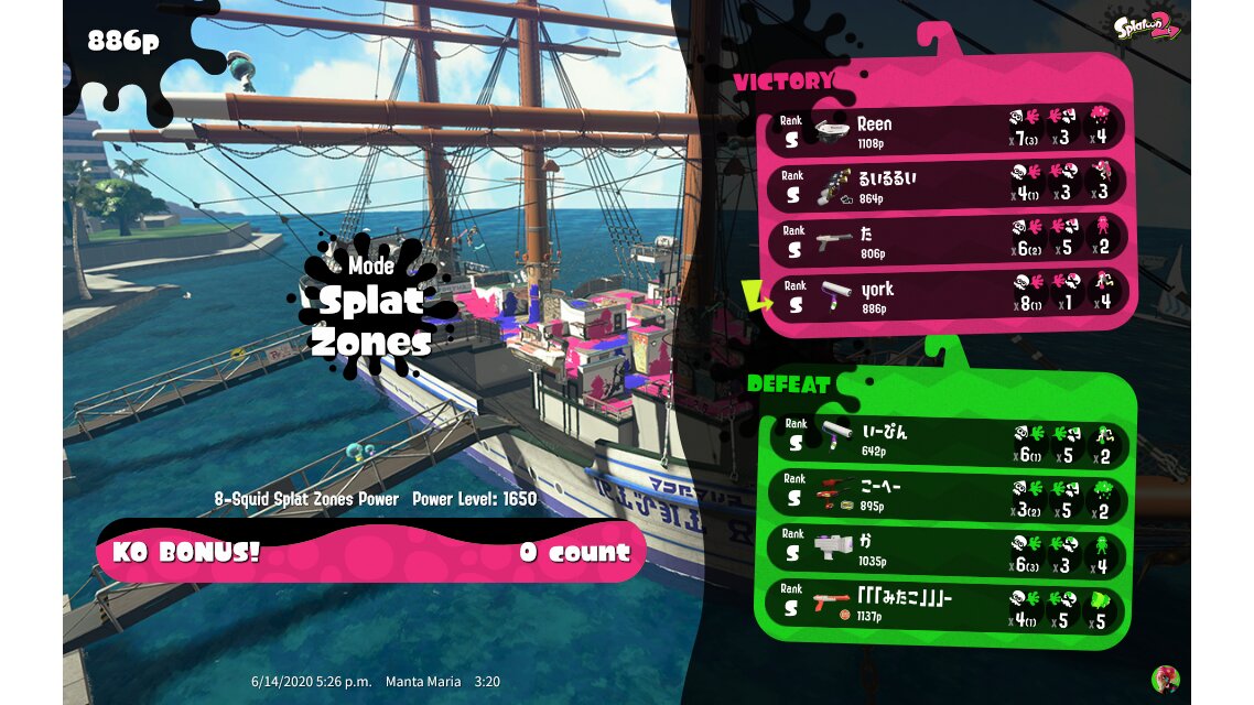 | Mode | Splat Zones - Ranked Battle | ||||||||||||||||||||||||||||||||||