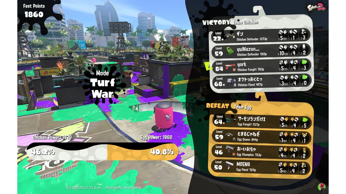 | Splatfest Title | Chicken Fangirl 20 → Chicken Fiend 0 | ||||||||||||||||||||||