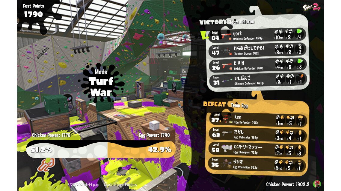 | Splatfest Title | Chicken Defender 40 → Chicken Defender 110 | |||||||||||||||||||||||||||||||