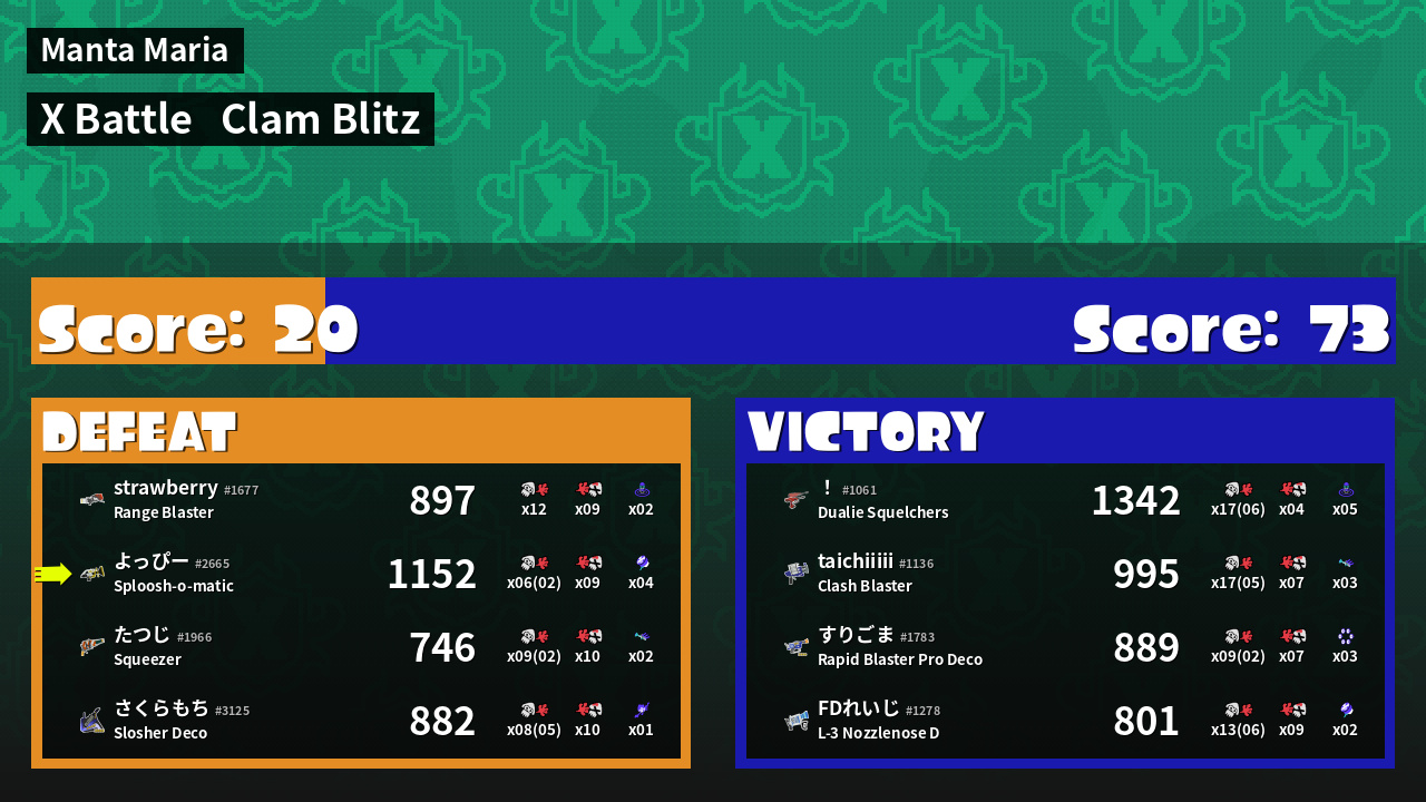 | Mode | Clam Blitz - X Battle | ||