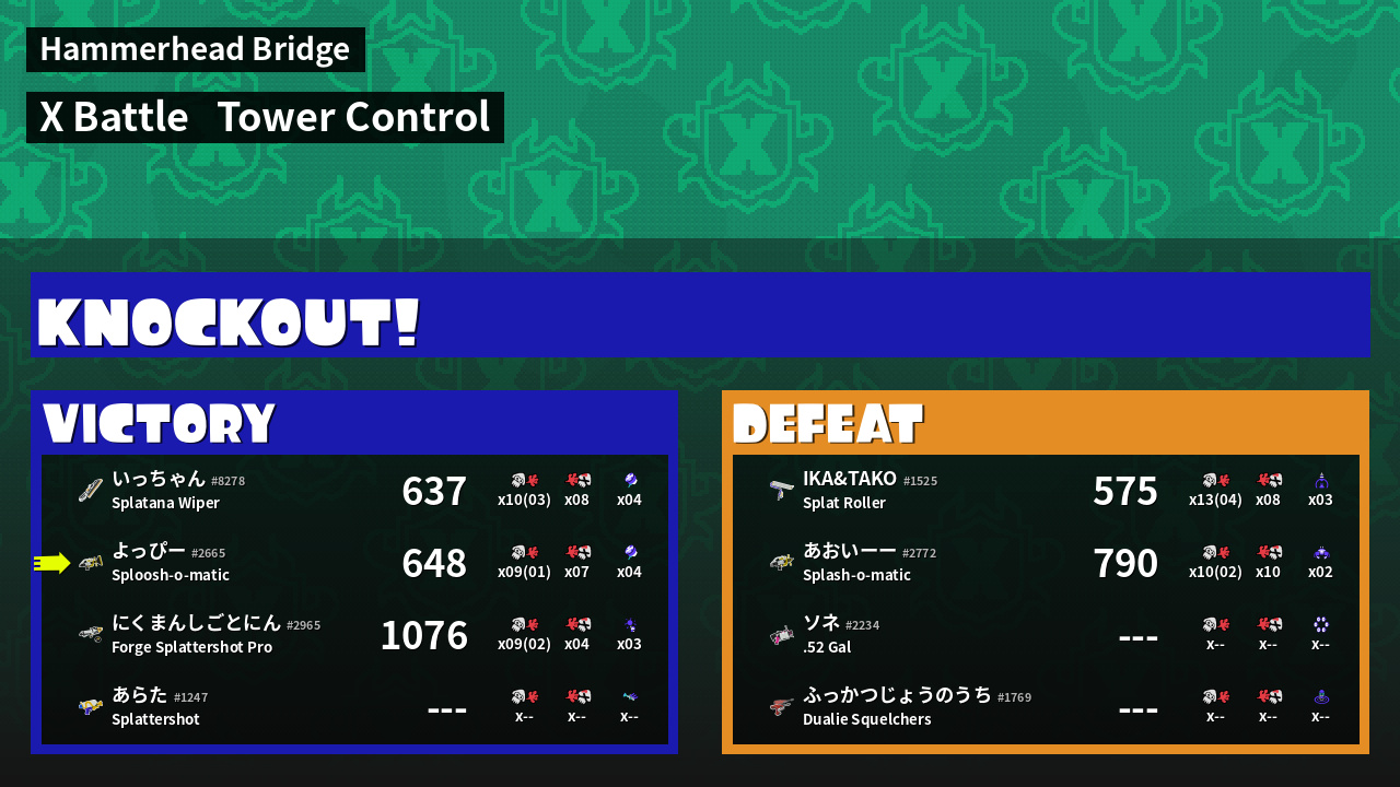 | Weapon | Sploosh-o-matic ( Curling Bomb / Ultra Stamp) | ||
