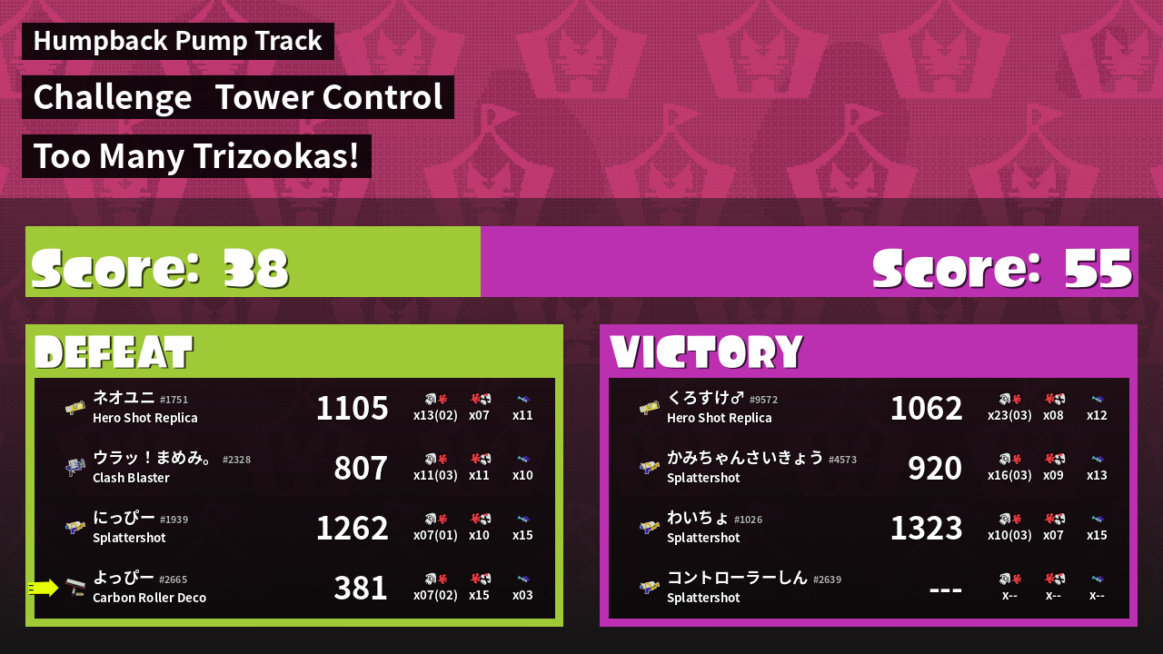 | Weapon | Carbon Roller Deco ( Burst Bomb / Trizooka) | ||