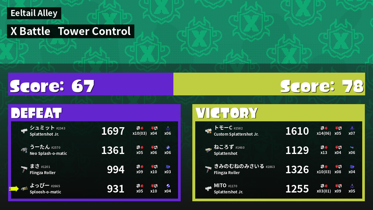 | Mode | Tower Control - X Battle | ||