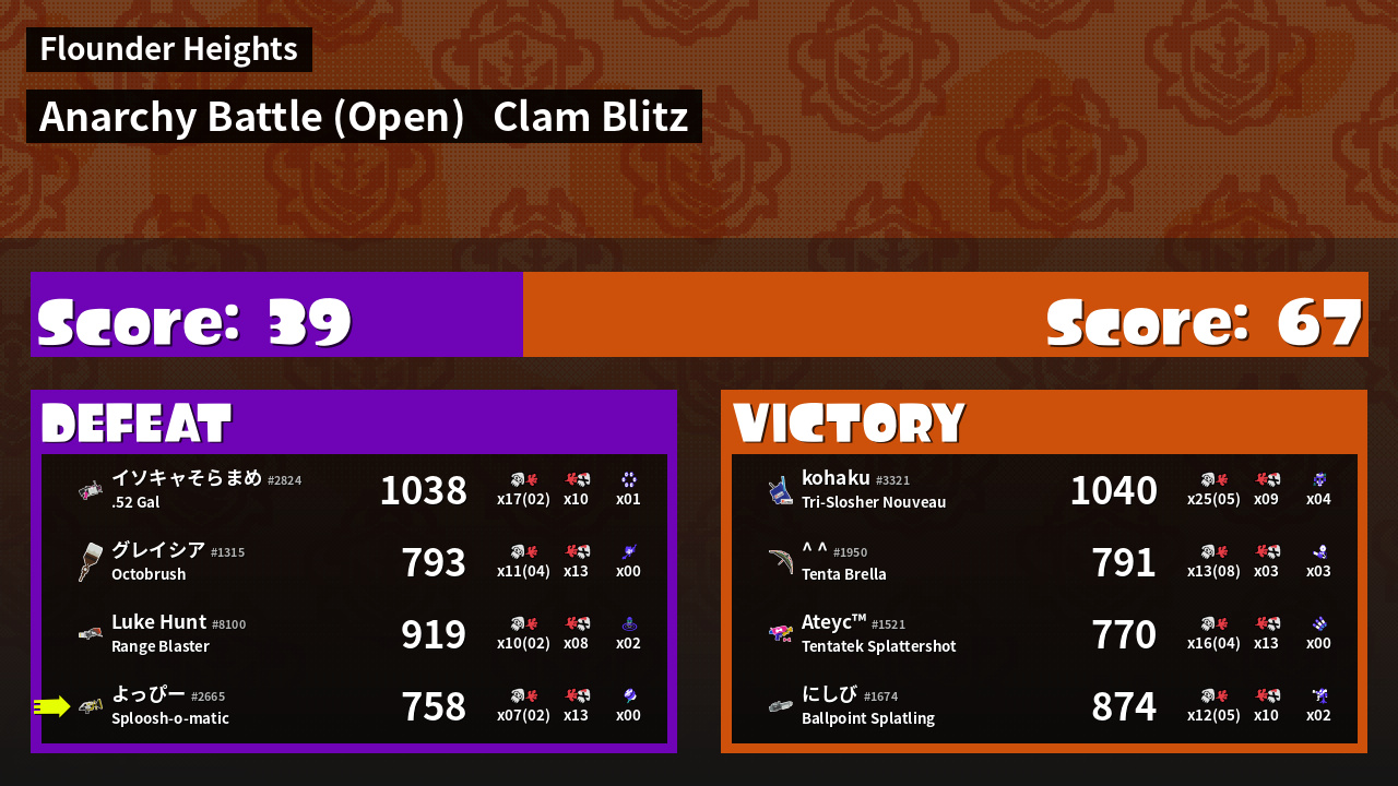 | Mode | Clam Blitz - Anarchy Battle (Open) | ||