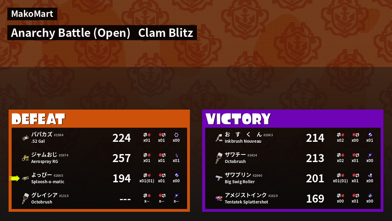 | Mode | Clam Blitz - Anarchy Battle (Open) | ||